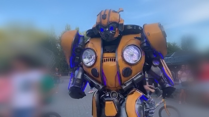 В одни прекрасный день на Юго — Западном жилмассиве в Ленинском районе Новосибирска изумленные жители заметили нового обитателя — по Бульвару Победы разгуливал самый настоящий робот. Желто - фиолетовый гигант возник вроде бы ниоткуда и его тяжелая поступь даже кое - кого напугала. Однако очень быстро стало понятно, что робот на самом деле добрый. Он охотно здоровался со всеми за руку, позволял фотографировать себя и вообще производил впечатление весьма покладистого и воспитанного человека, хоть и железного.