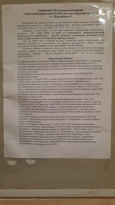 тем, атмосфера на Красном Проспекте, 102/3 продолжает накаляться. Низвергнутая председатель совета дома
