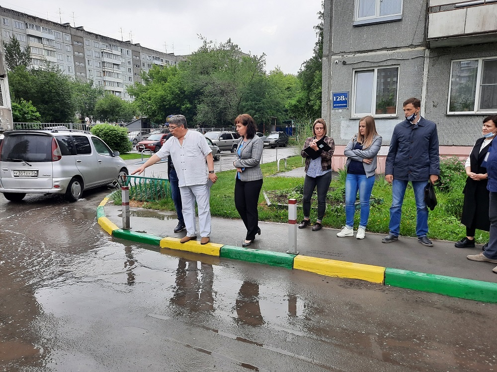 Поскольку работы имеют гарантий срок в 3 года и все огрехи должен исправлять сам подрядчик за свой счет, то были написаны соответствующие письма с просьбой разобраться в управляющую компанию СПАС-Дом и депутату этого городского округа Ивану Конобееву. В результате переписки в один прекрасный день во дворе дома появилась представительная комиссия , которая должны была оценить ситуацию на месте.