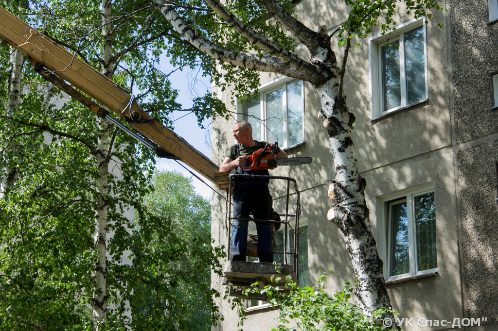 Раз в год, обычно весной или осенью, когда кроны деревьев еще не сильно обросли листьями или они уже опали, проводится необходимая санитарная обрезка. В тарифе на содержание любого многоквартирного дома деньги на это закладываются заранее в обязательном порядке. Работники управляющей компании СПАС-Дом при сезонном осмотре самих домов и придомовых территорий определяют, где и сколько деревьев необходимо привести в надлежащее состояние. Сильно низко и опасно нависающие кроны в любой момент, особенно когда на них много листвы, под собственной тяжестью могут рухнуть на случайного прохожего или припаркованный автомобиль.