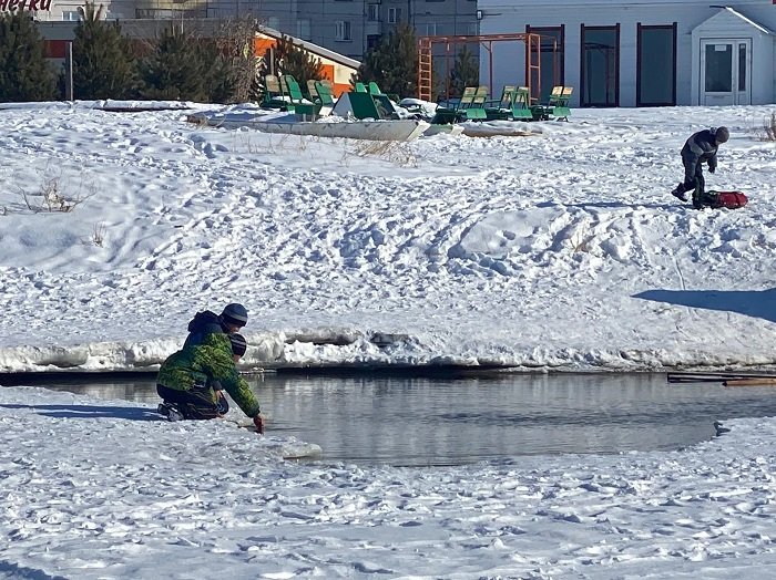 В УК «СПАС-Дом» обратились жители Юго-Западного жилмасива, заметившие на льду возле оттаявшей полыньи игравших ребятишек. Очевидно, пришедшая в город оттепель сыграла свою роль и любопытные дети несколько дней бегали в опасной близости к открытой воде.