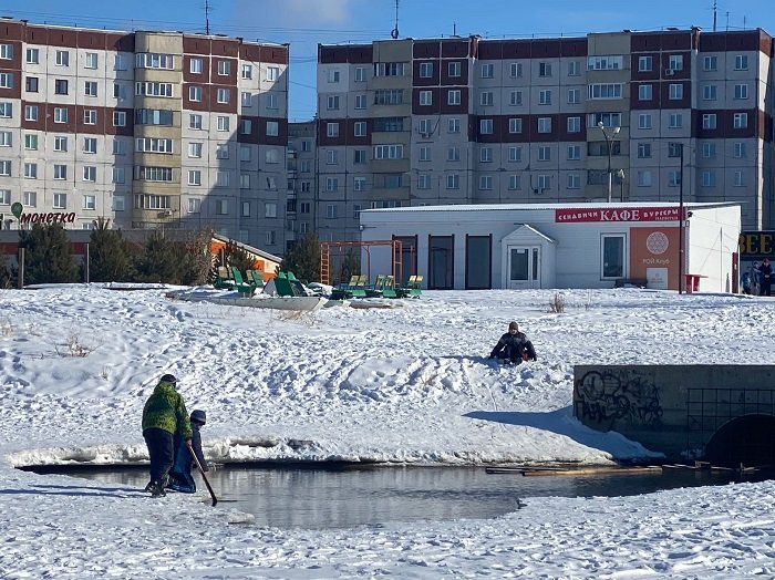 Обеспокоенные жители опубликовали соответствующие фотографии в местном паблике социальной сети «Вконтакте» и попросили управляющую компанию принять меры, что бы не случилось несчастье. Игры рядом с полыньёй зимой никогда ничем хорошим не заканчиваются.