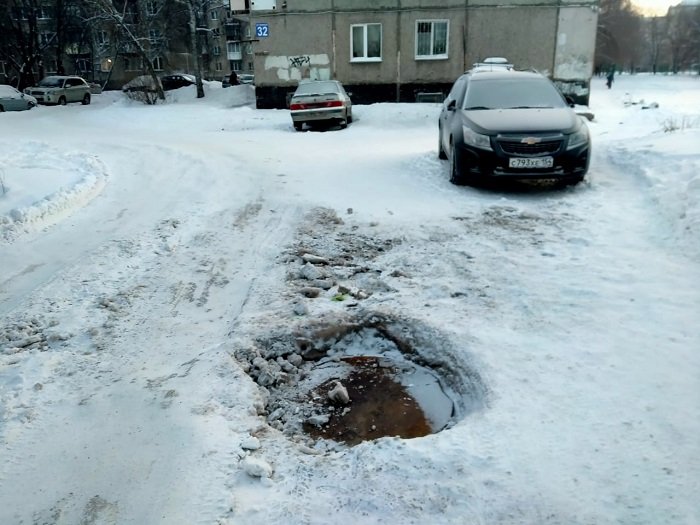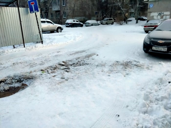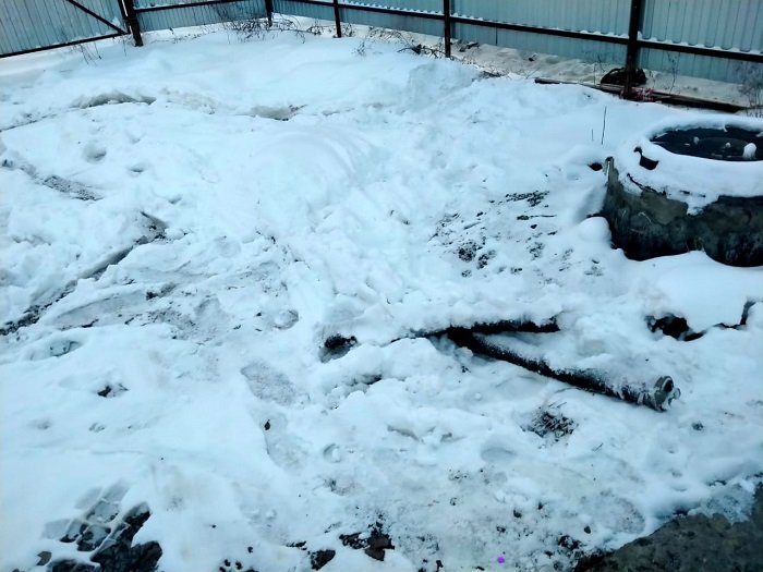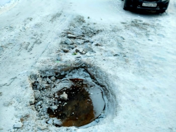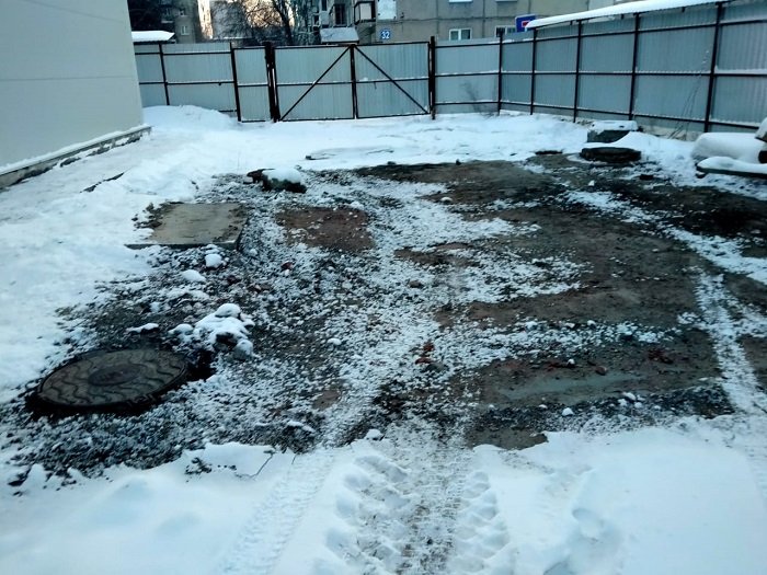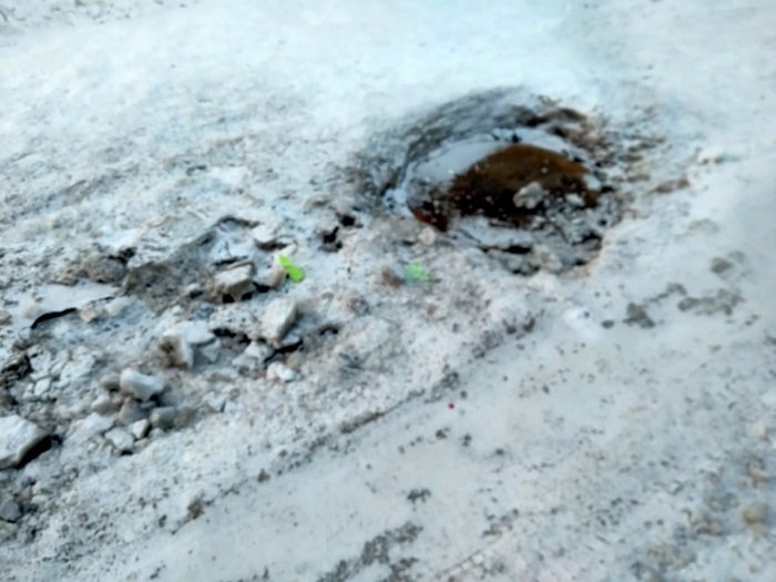 Практически сразу после ЧП энергетики быстро убрали шланг и попытались закидать снегом размытую проезжую часть. Но и сутки спустя, следы вчерашней аварии ещё достаточно хорошо видны.