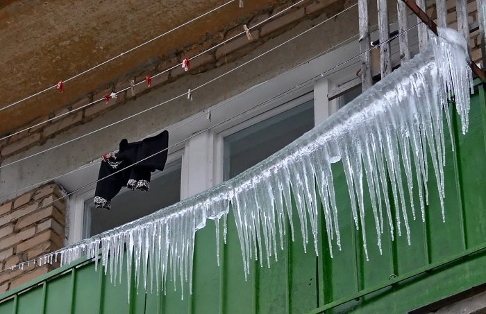 Если собственник квартиры не сообщит о необходимости проведения таких работ в управляющую организацию, и сосульки или снег, сорвавшись с балкона, повредят имущество или нанесут травмы человеку, есть риск привлечения такого собственника к ответственности как минимум в виде возмещения причинённого вреда.