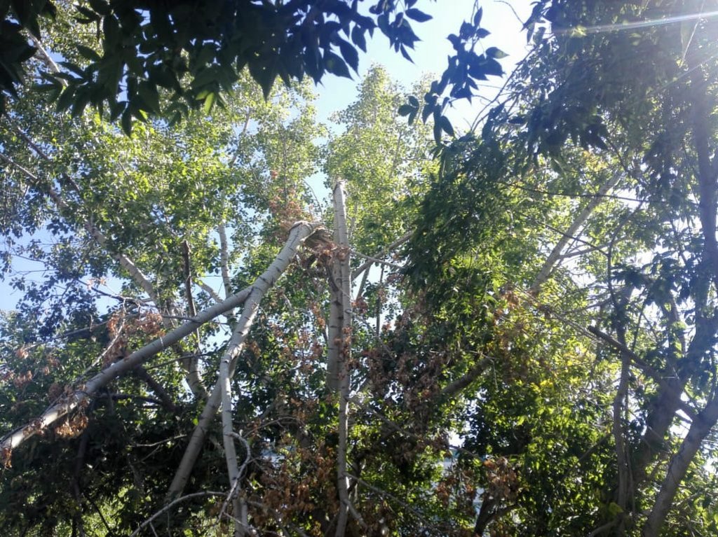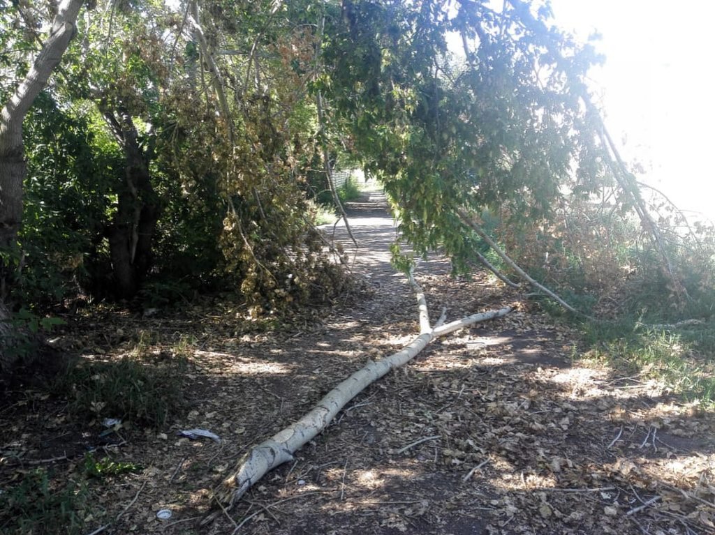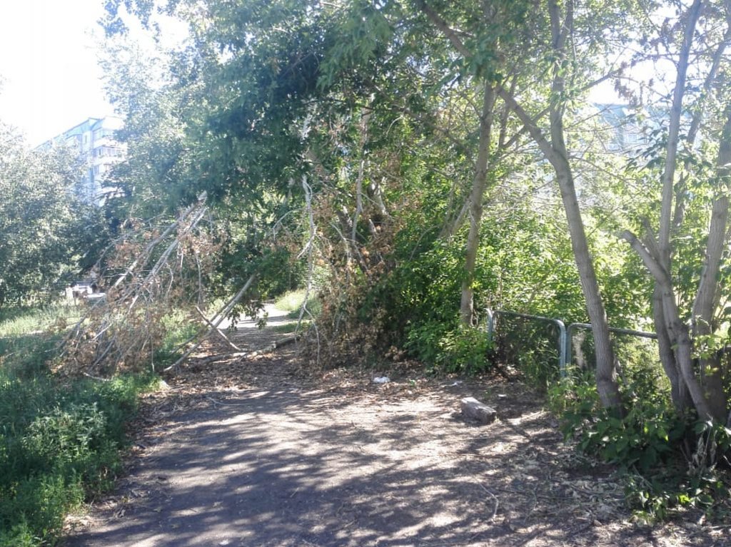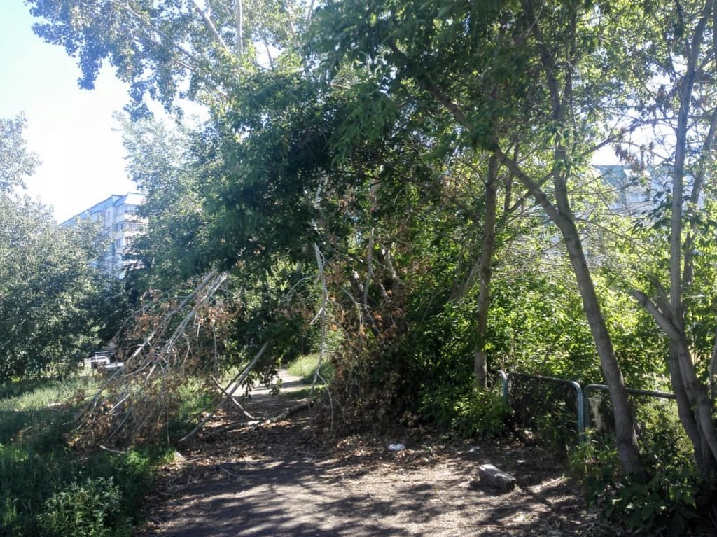 Участившиеся сильные ветры периодически и вовсе превращают зеленые посадки в непролазные дебри, как на том же Юго — Западном жилмассиве, когда после очередного урагана заросшая старыми кленами тропинка превратилась в полосу препятствий. Единственная дорожка от школы № 50 до домов на улице Троллейной 146 и 136 уже не первый год беспокоит жителей своей не ухоженностью. Расположенный на муниципальной территории когда-то очень давно имевший асфальтовое покрытие тротуар, сейчас стал пугающе не проходным.
