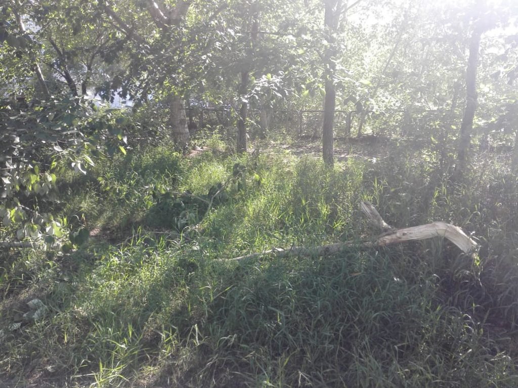 заросли, ветки валяются везде, а