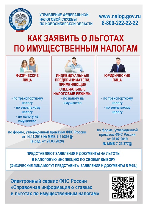 УФНС России по Новосибирской области уведомляет жителей о том, что в течение 1-го квартала 2022 года необходимо представить заявление о налоговой льготе, если таковая появилась впервые в 2021 году по транспортному, земельному налогам и налогу на имущество физических лиц.